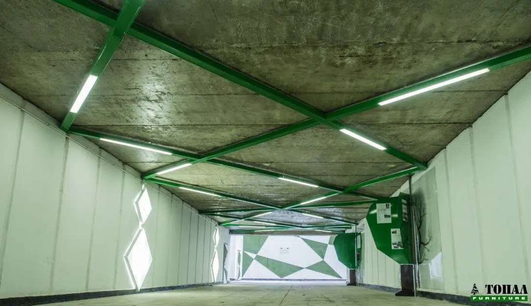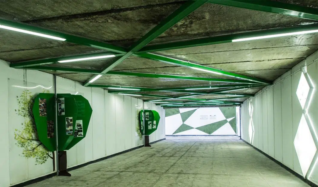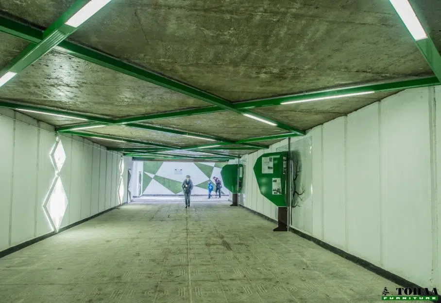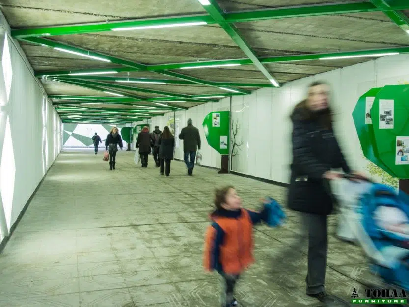 Цялостната концепция е насочена върху приятния интериор на подлеза, подтиквайки хората да го използват, като по този начин се избягва неправилно пресичане.