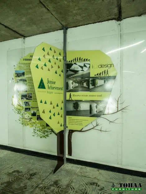 В подлеза има обемни триизмерни дървета наподобяващи страници от книга, тъй като могат да се разгръщат, с тях искаме да покажем на хората, че изборът е изцяло наш, от нас зависи на коя страница ще обърнем.От ляво на дървото е показано изсъхнало дърво, а от другата страна е зелено дървото(на снимката тук).