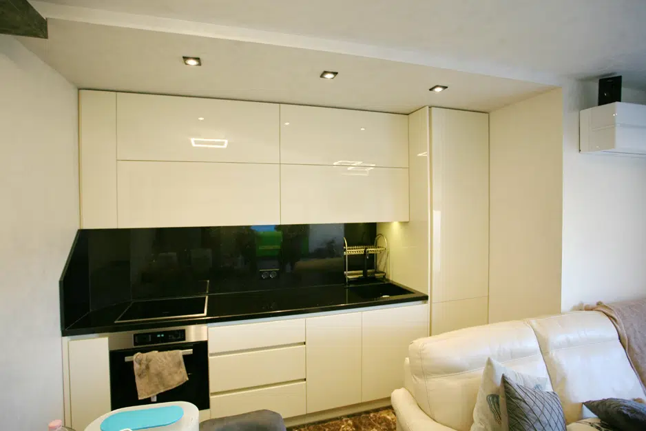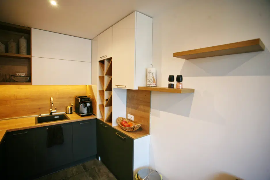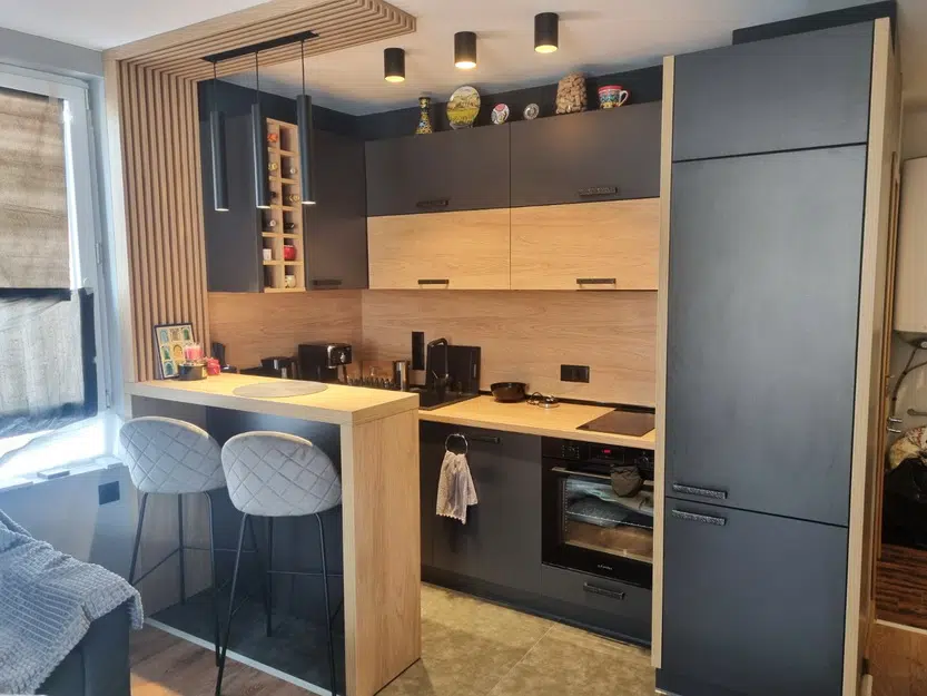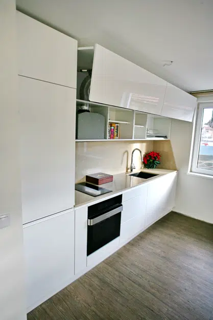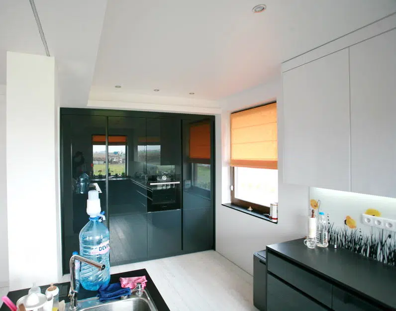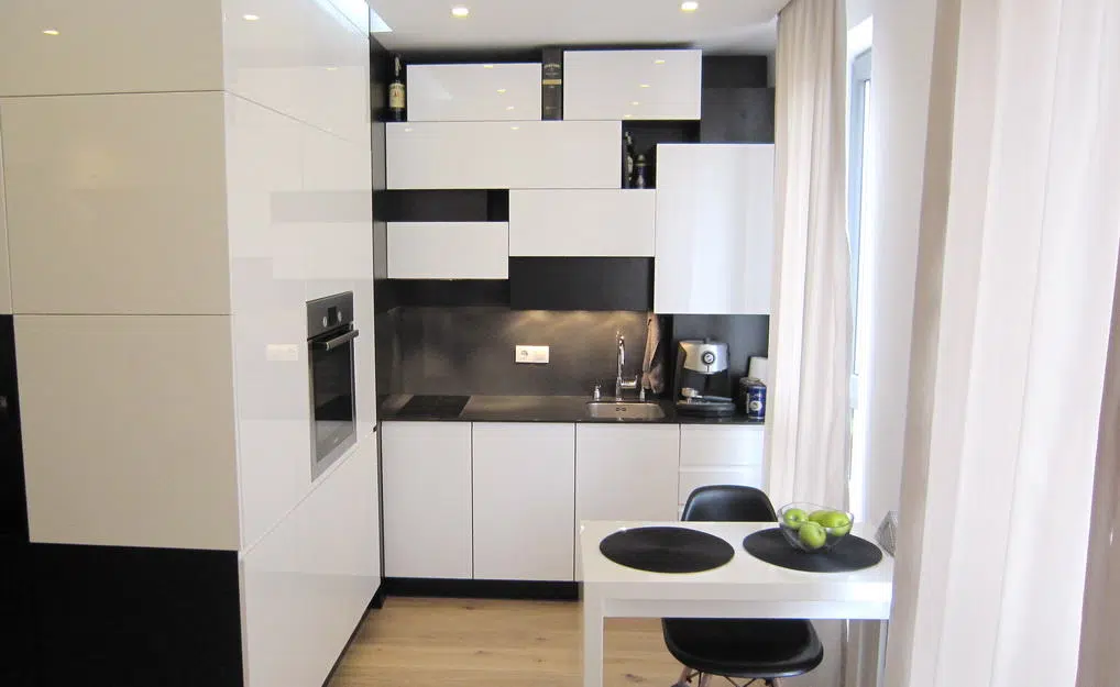 1.Отговорът на този въпрос е въпрос на бюджет или напасване на съответните модули. Ако не е възможно напасването на готови модули вие имате нужда от кухня по поръчка