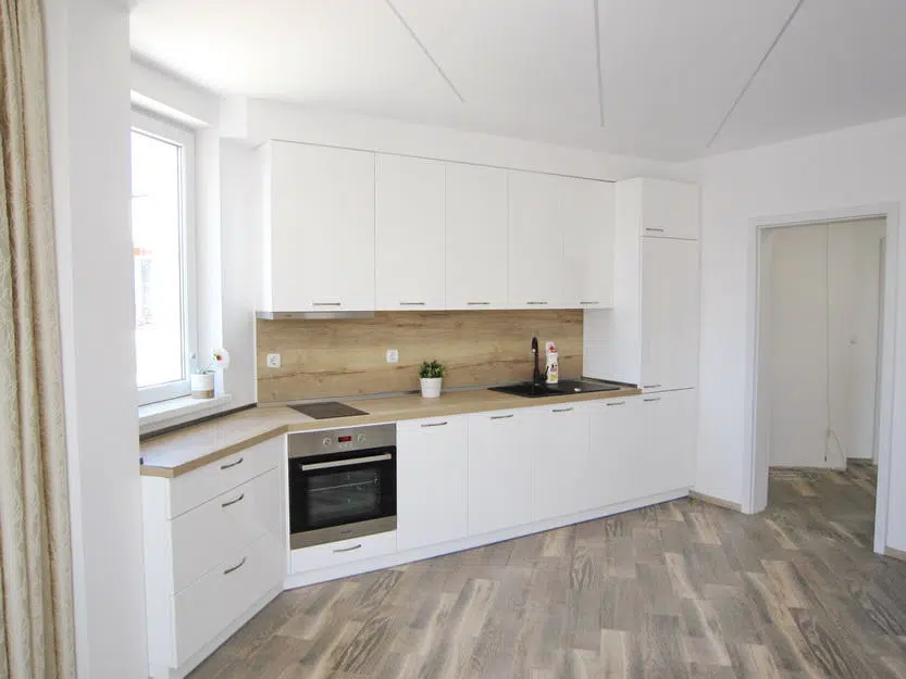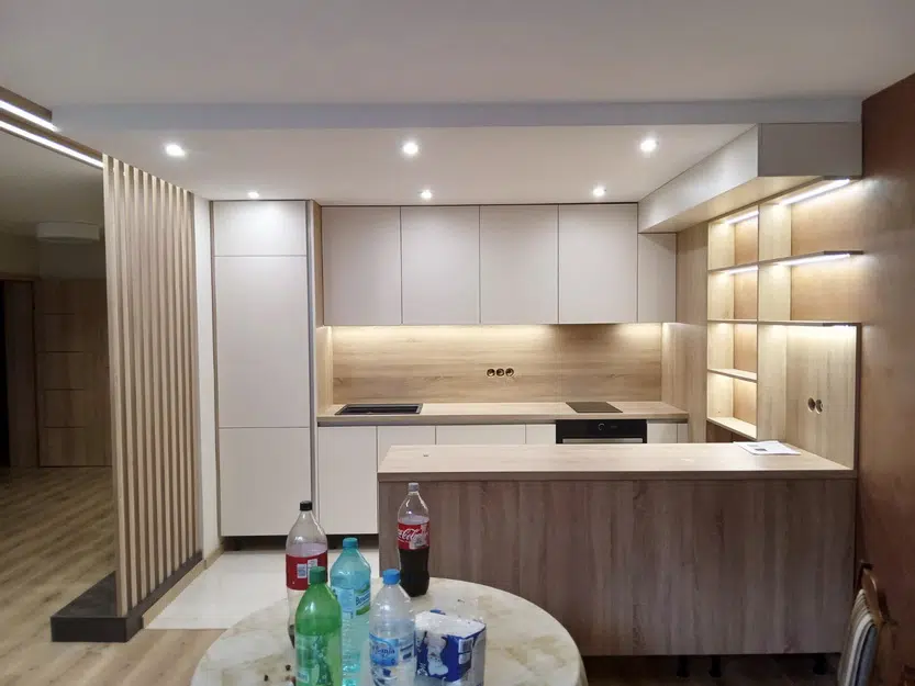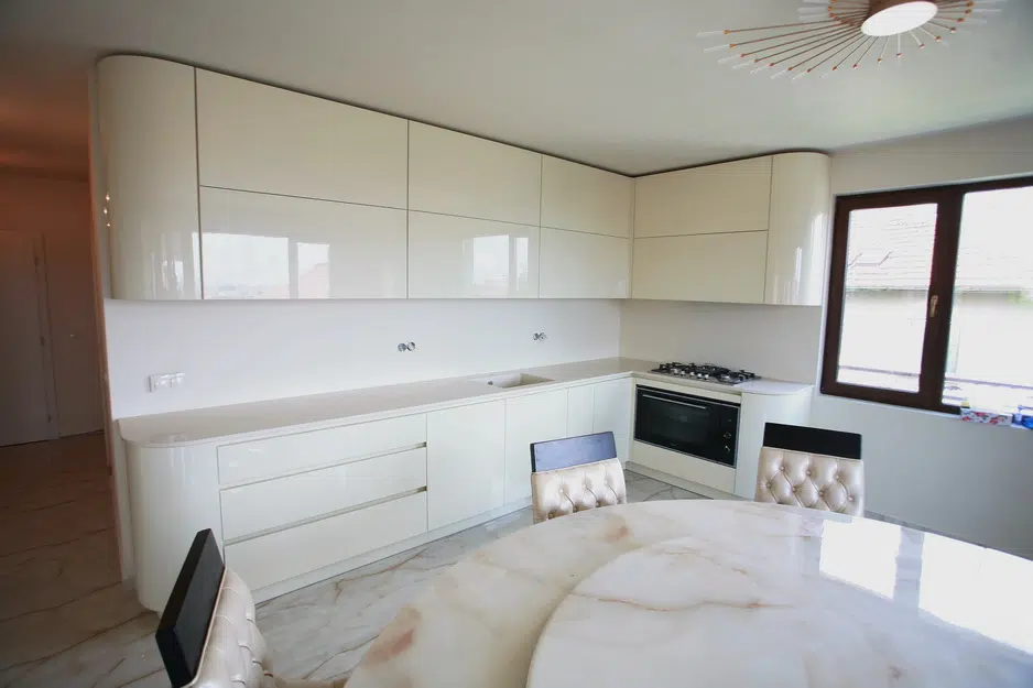 Кухненско обзавеждане. Кухнята е сърцето на един дом. Кухненско обзавеждане Интериорния дизайн и добре планираното функционално разпределения в кухнята може драстично да увеличи удоволствието от готвенето. Ние предлагатме на своите клиенти изключително голямо разнообразие от решения, разпределения, , кухненски уреди, аксесоари, механизми, метериали като ПДЧ ламинирани плоскости, акрилни плочи, МДФ фурнир.Кухненско обзавеждане.
