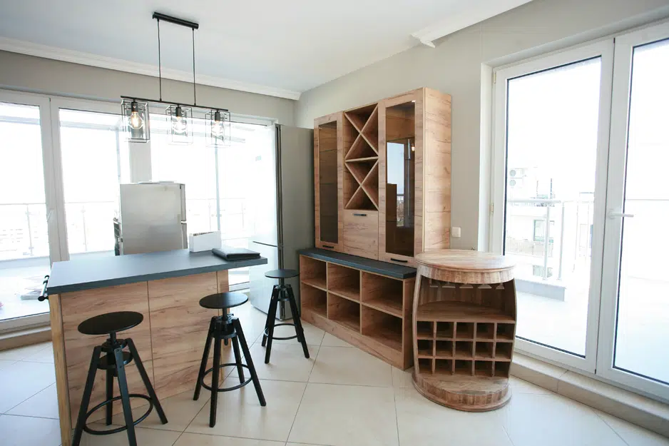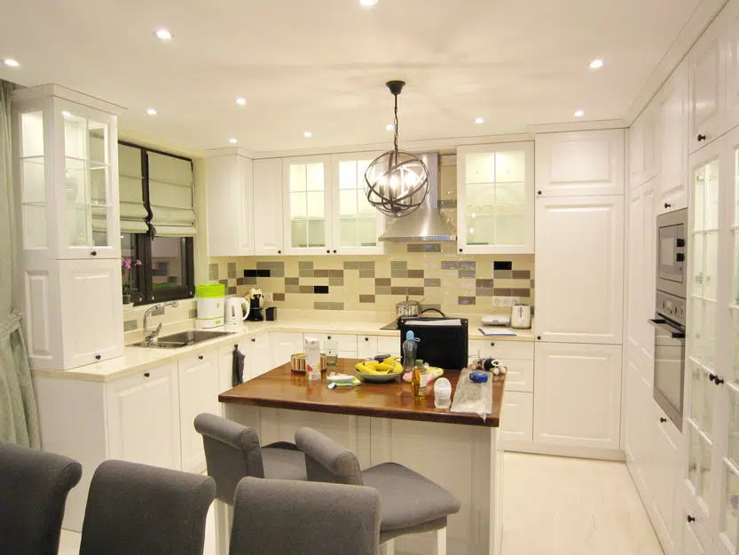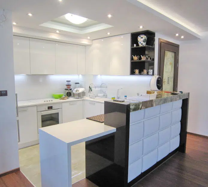 4.Островен тип – Добре планираната кухненски остров, може да изпълнява много роли, от жилищните уреди и мивки за предоставяне на съхранение, за сядане и зоните за подготовка