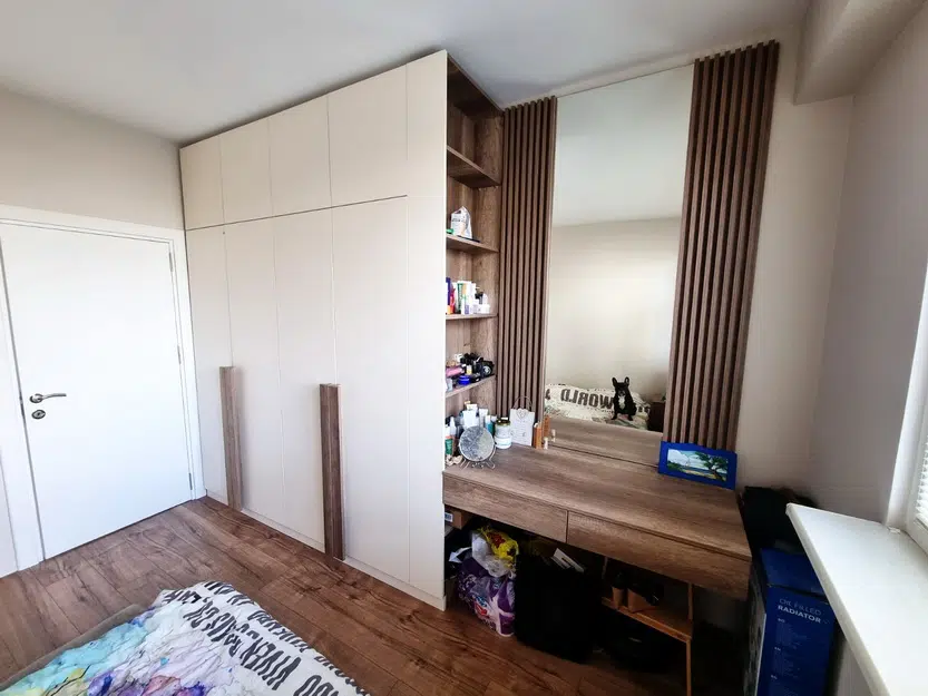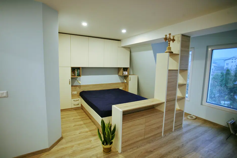 Ние ще използваме височината на цялото помещение и ще затворим нишите който събират прах. Съобразените функционални норми и технологични изисквания ние ще предложим и уникален дизайн за вашата спалня.