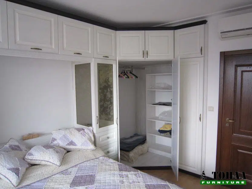 Гардеробите напълно ще оползотворят пространството и малки досадни ниши, както при готовите обзавеждания за спалня няма да ги има. Куфарите са натъпкани върху високите върхове шкаф – най-лошото от прах капани.